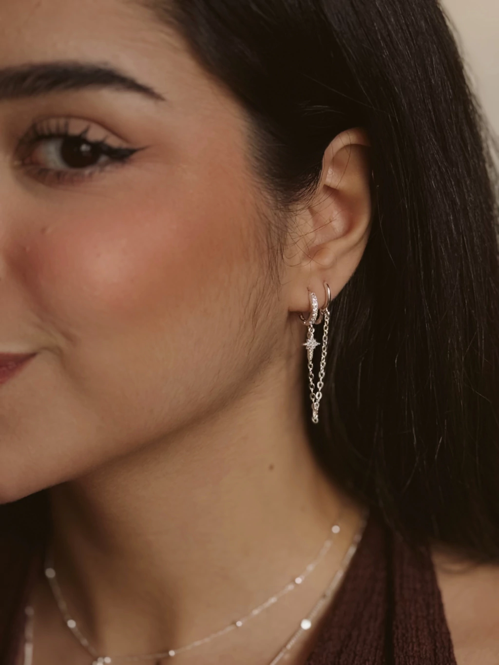 Kit Brincos Constelação Transforme seu visual com três brincos diferentes (NÃO É PAR) que permitem uma composição cheia de estilo. Cada peça é uma argolinha de click, fácil de colocar e perfeita para explorar a criatividade em mix de acessórios.